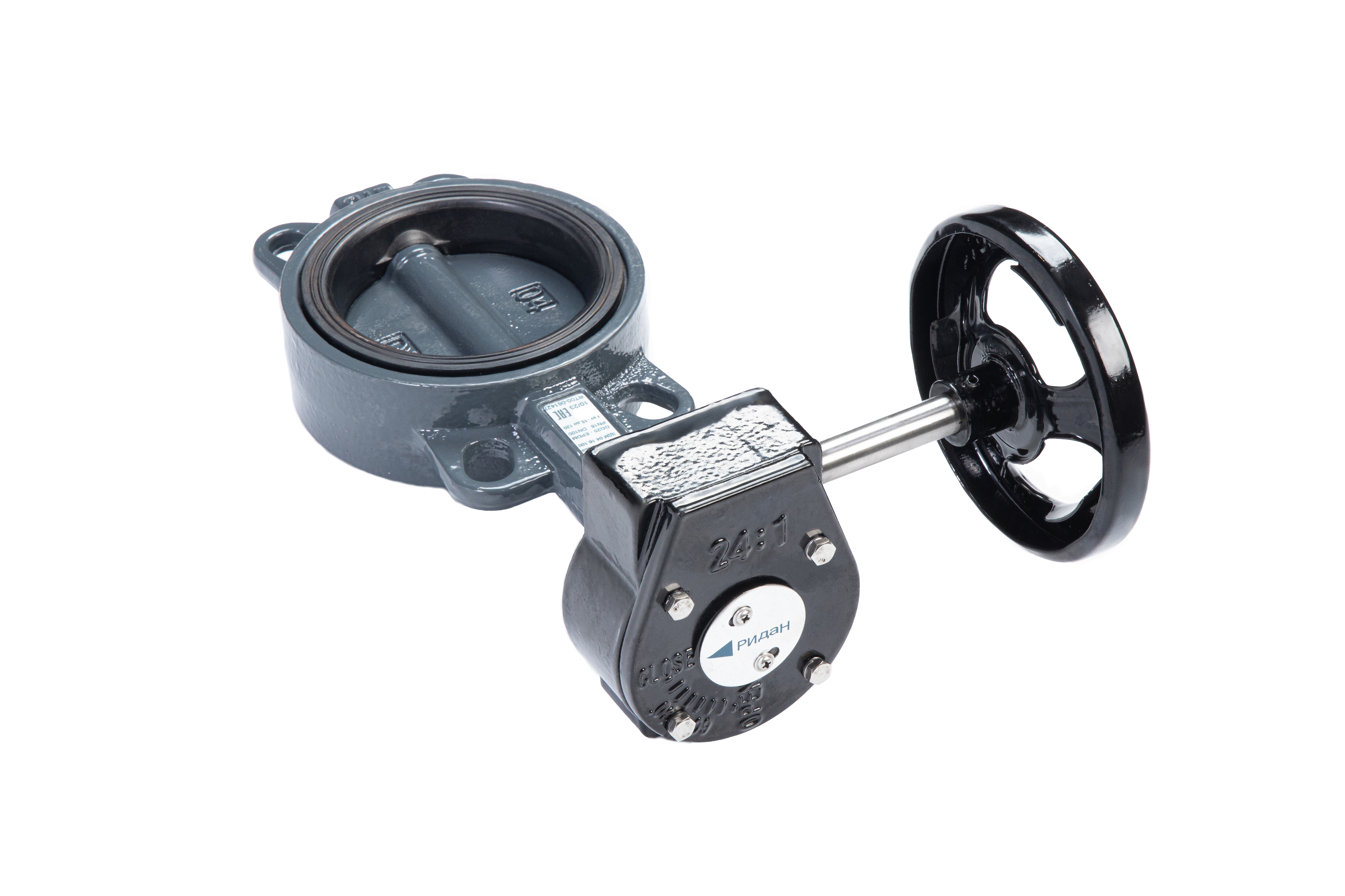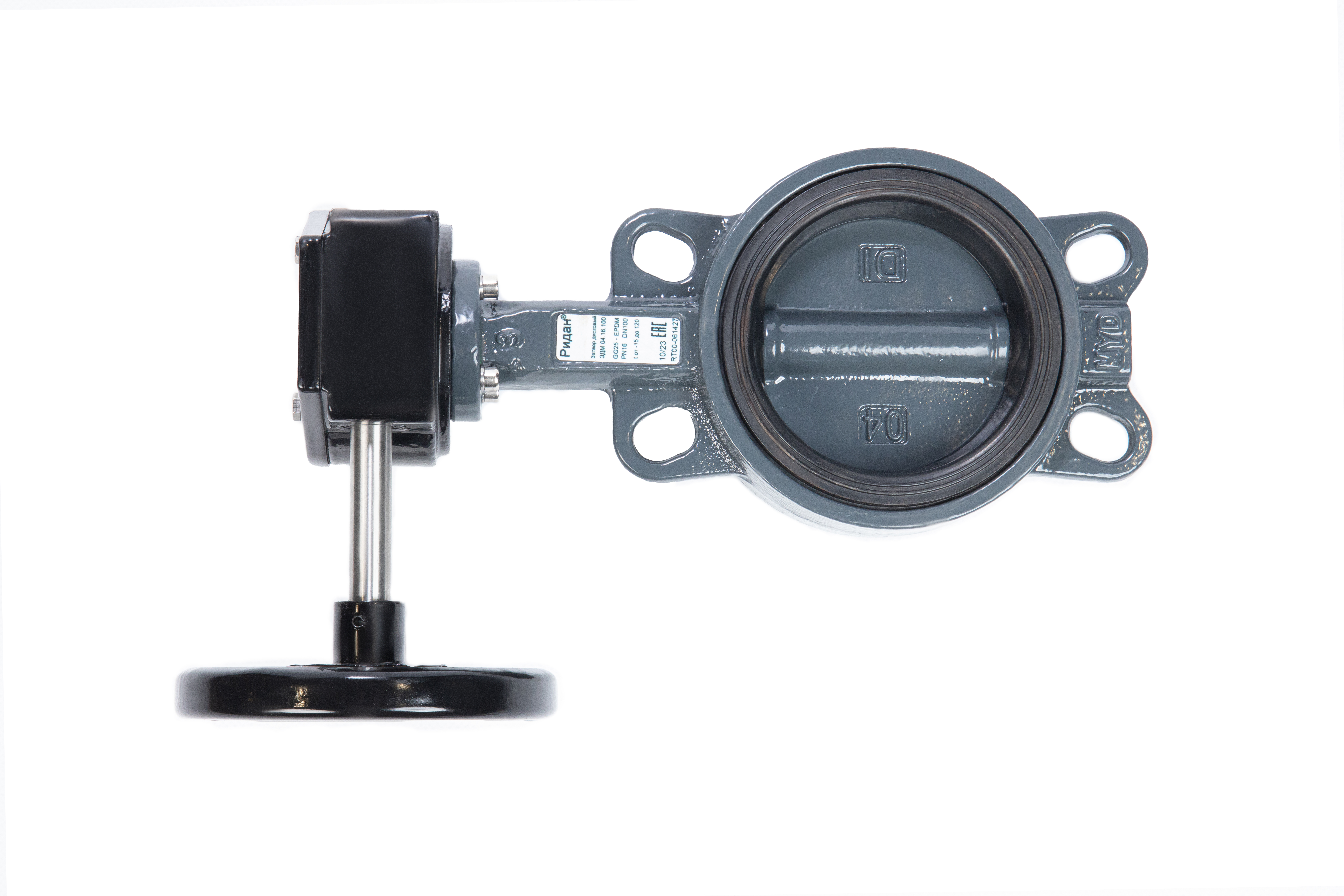 Ридан 082X4416R — Затвор дисковый поворотный ЗДМ 04.16.350, PN16, DN350, корпус GG25, диск — чугун GGG40, уплотнение EPDM, управление — червячный