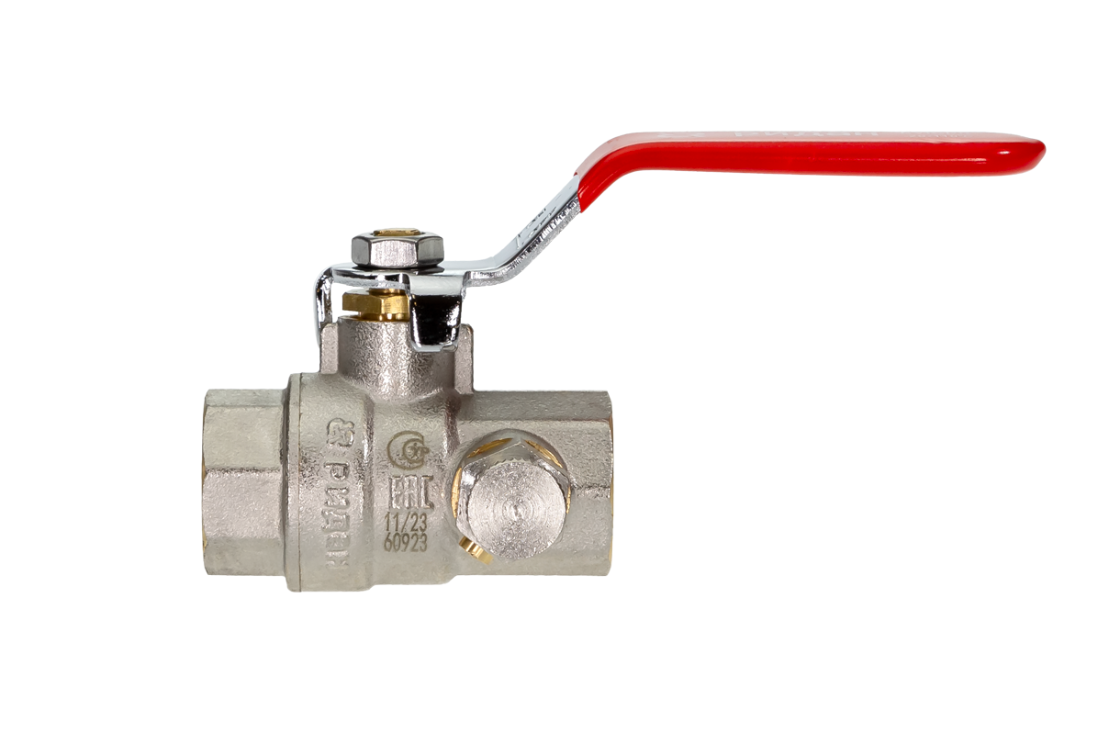Ридан BVR-DR 065B8319RG — Кран шаровой ГОСТ59553-2021 PN40 DN32 с внутренней резьбой и спускным элементом; Т -20 °С...+110 °С; материал корпуса латунь